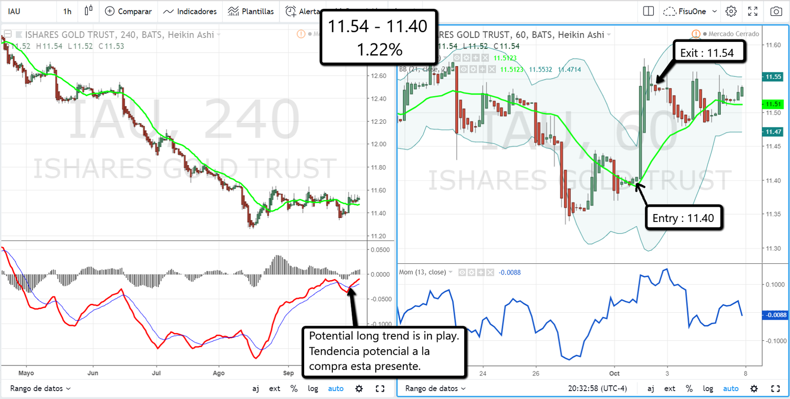 At the beginning of the week it was indicated to go long or buy SLV and the trade was confirmed with entry in 13.57 and output in 13.86 a 2.1% weekly gain.