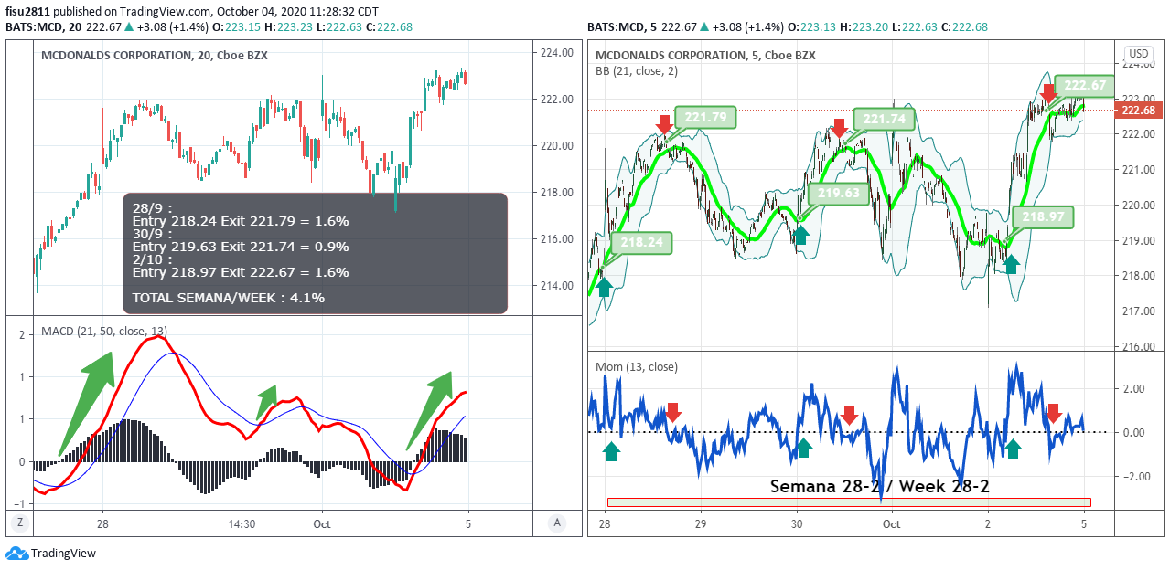 When the crossing of lines is manifested and as long as it does not cross in the other direction, it maintains this trend, observe that in the week there were 3 cycles of trend to buy in McDonald’s, one on Monday 28, another on Wednesday 30 and the last one on Friday 2 .