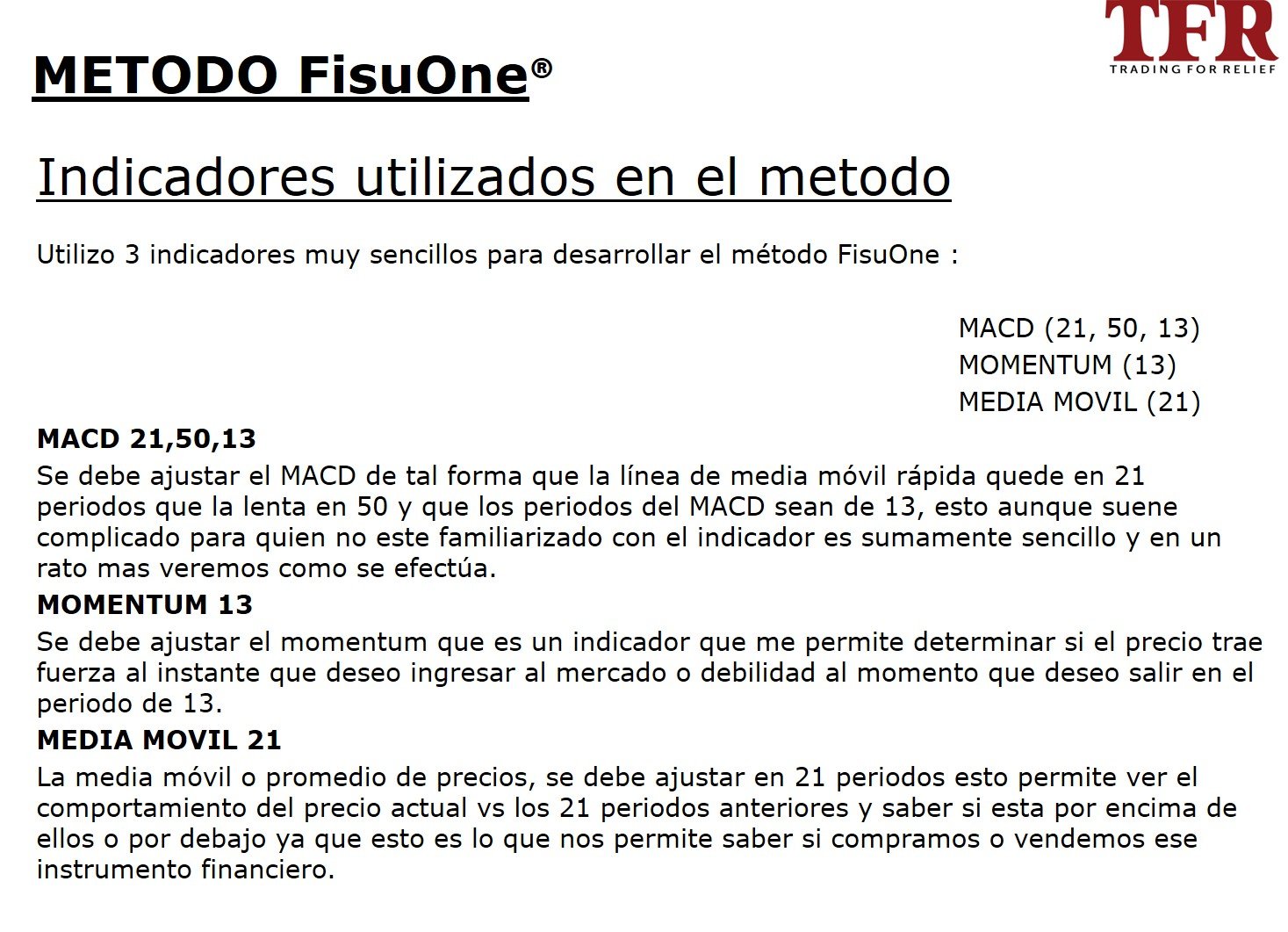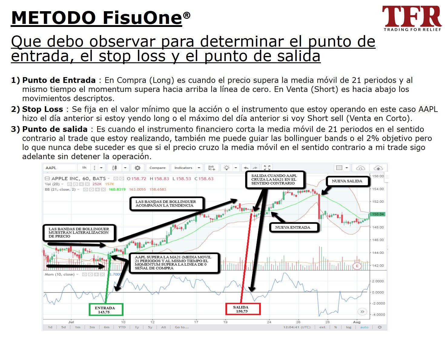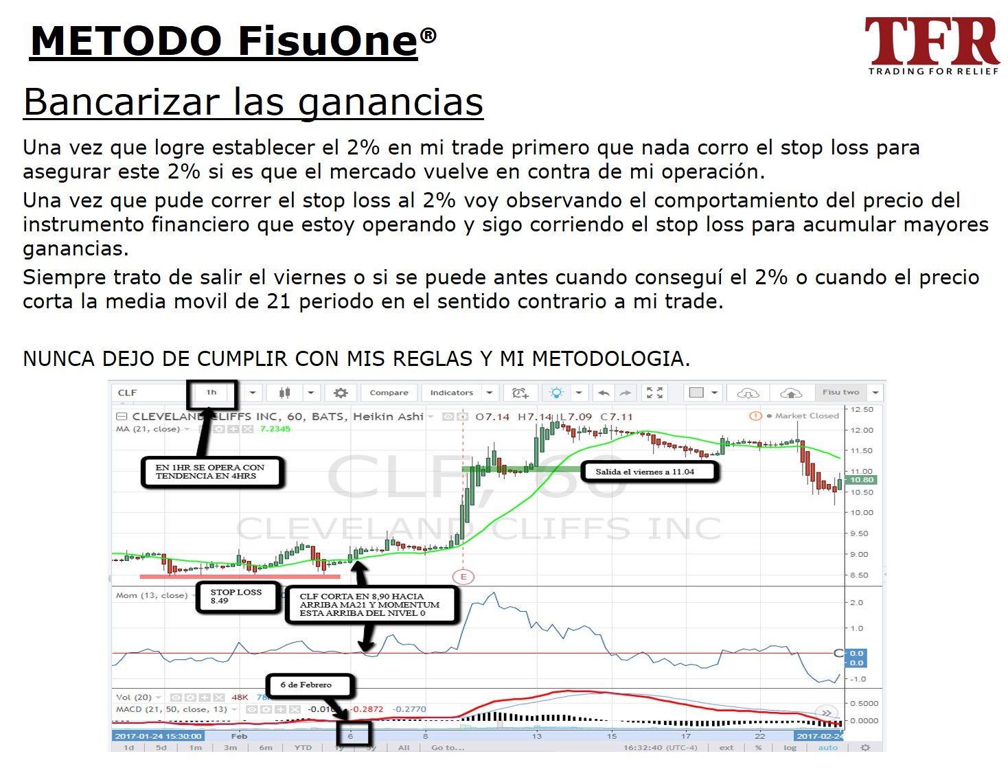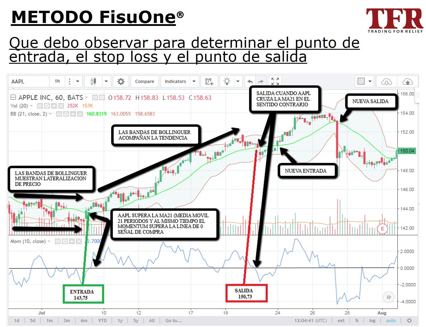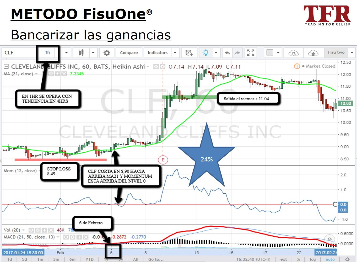 El método FisuOne se basa en el concepto de identificar la tendencia de un instrumento financiero en un tiempo que es 4 veces mayor al tiempo donde voy a tomar la decisión de entrada y salida.